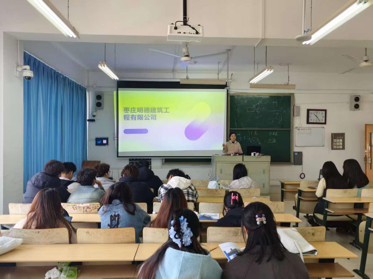 为精准对接建筑行业优质人才需求,助力2026届毕业生拓宽就业渠道、明晰职业方向,3月21日上午10点,我院邀请枣庄明德建筑工程有限公司在理工楼2318举办专场宣讲会。学院就业工作负责人、部分毕业生代表共同参与此次活动。